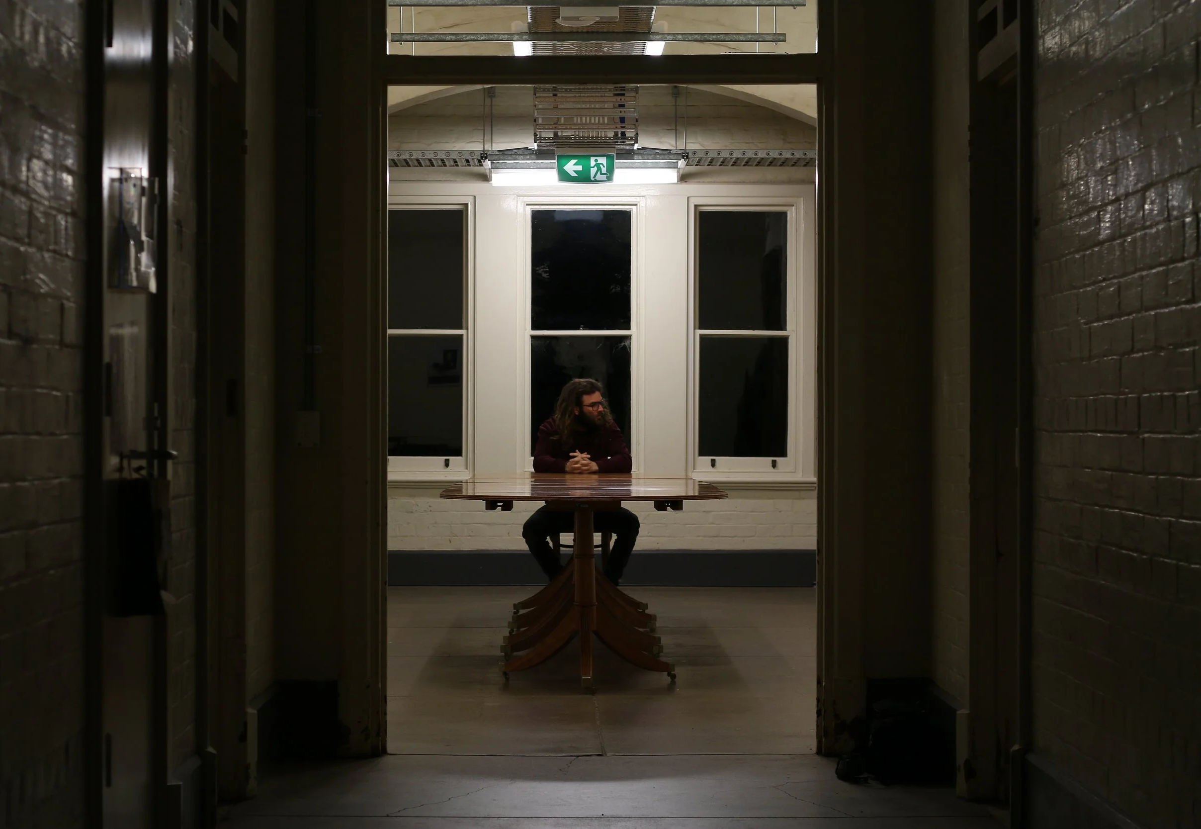 Working: The other desk is a mirror of the first, but intentionally left unfinished. It gives hints to how each component from the old boardroom table was repurposed. It bears scars, etchings in the original finish, and relics in the form of mechanisms from the discarded meeting table. This desk represents the personal workstation, left unchecked with a little chaos amongst the order. Its personalisations make it one of a kind, finding value in individuality.